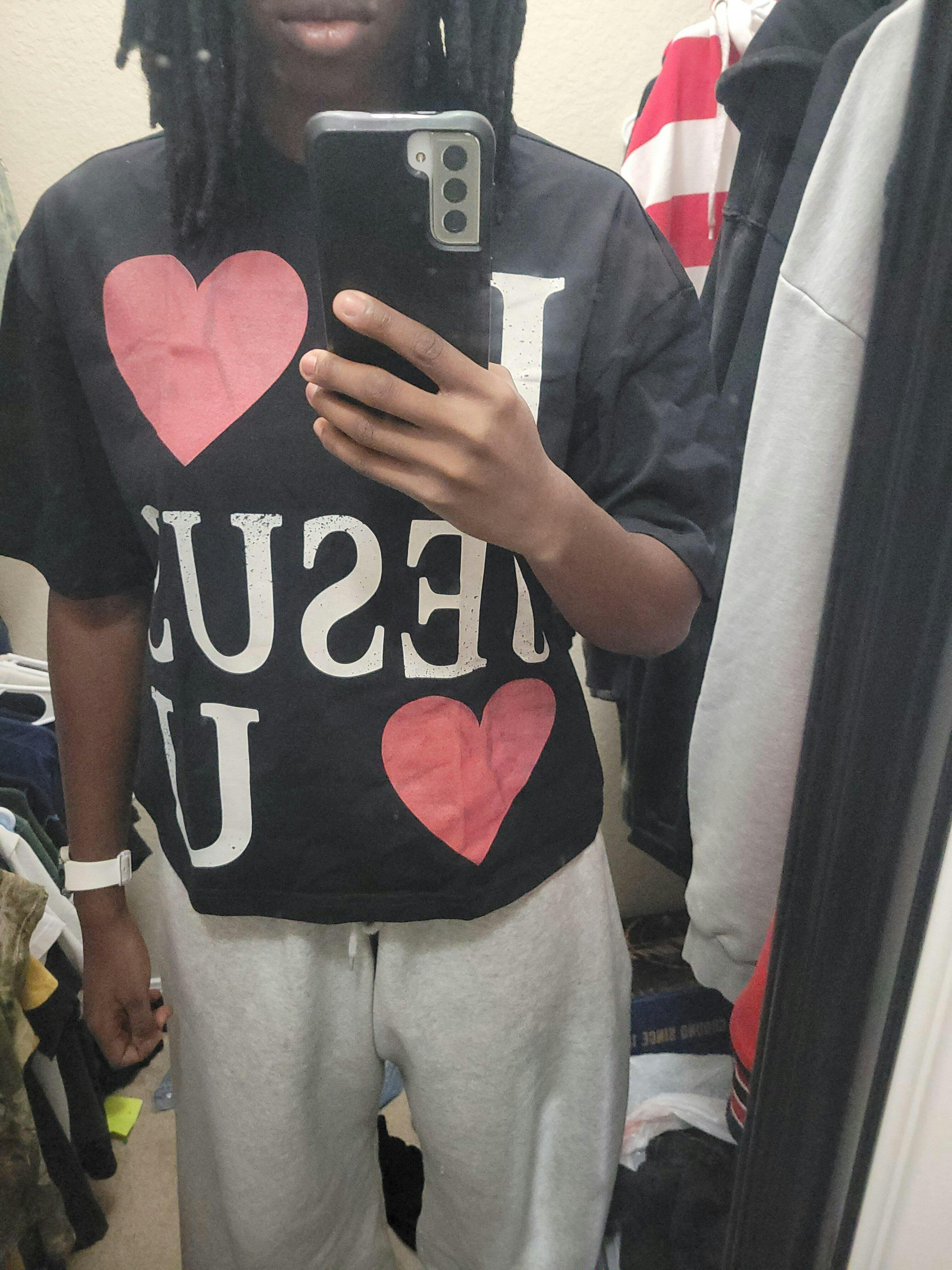 "JESUS LOVES U" BLACK CROPPED TEE